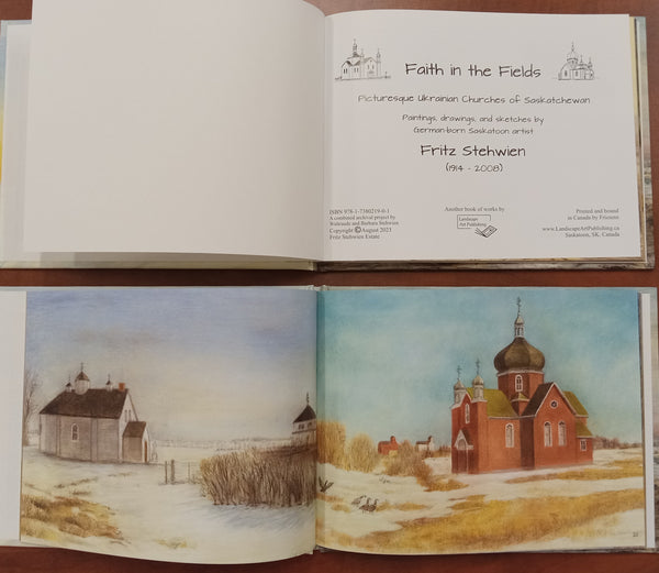 Faith in the Fields - Picturesque Ukrainian Churches of Saskatchewan. Drawings, Sketches and Paintings, by Fritz Stehwien (Hardcover, 48 pages)